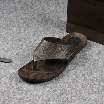 Nouveau été antidérapant fond souple un mot pantoufles en cuir pour hommes 050