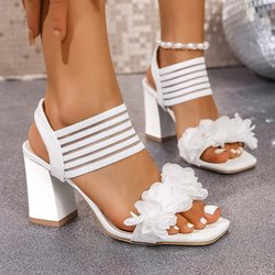 253 섹시한 샌들 뜨거운 판매 새로운 크로스 스트랩 유행 하이힐, 오픈 토 스퀘어 힐 여성 신발 공장 직접 판매